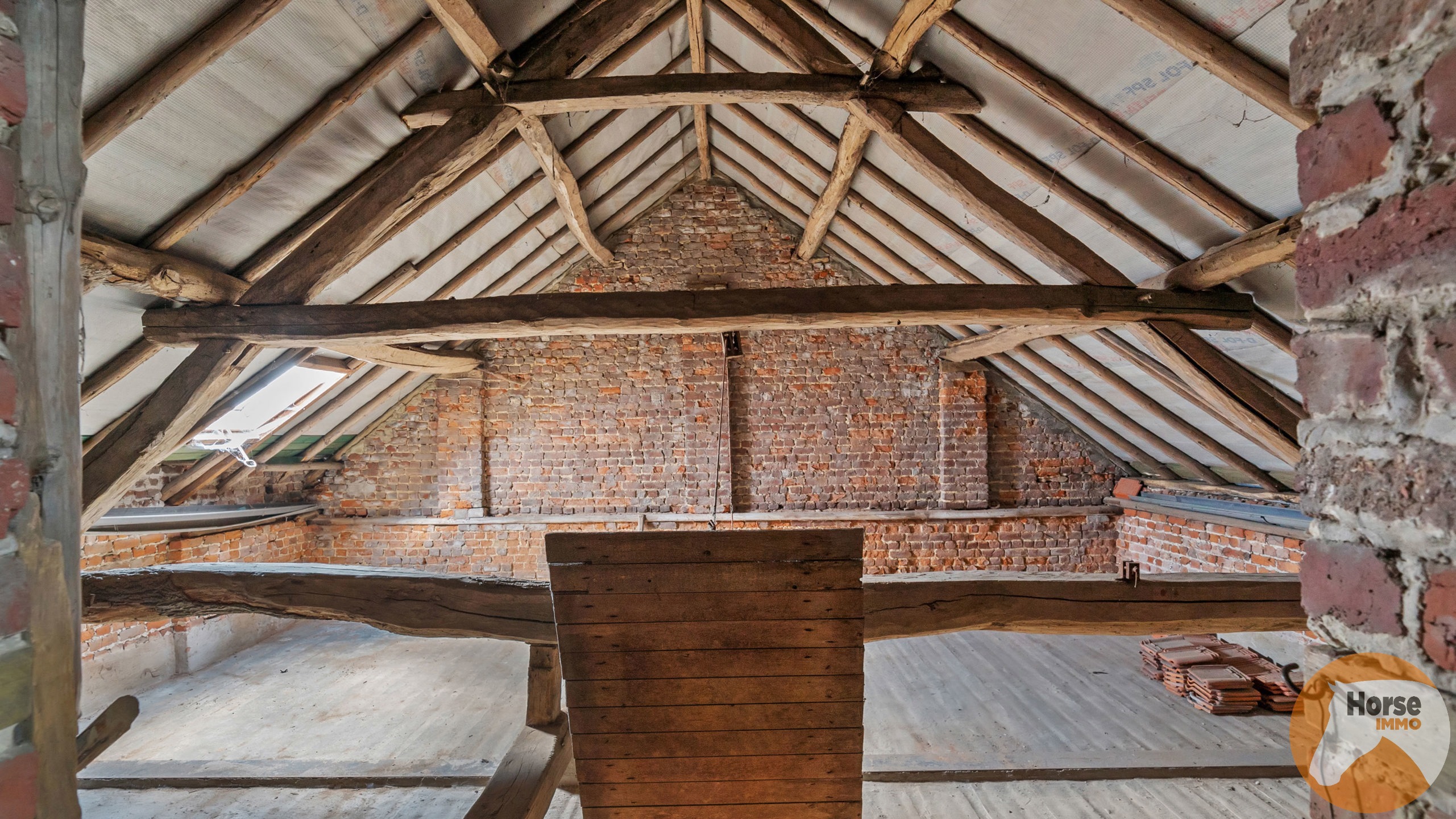 De woning zelf verwelkomt u via een inkomhal naar een gezellige leefruimte met een prachtig uitzicht op de achterliggende weide, ideaal voor dierenliefhebbers of voor wie simpelweg van het landelijke buitenleven wil genieten. Aansluitend vindt u een open en ingerichte keuken met handige berging, twee comfortabele slaapkamers en een badkamer. Zowel boven het woongedeelte als boven de schuur bevinden zich royale zolderruimtes die nog perfect kunnen worden ingericht volgens uw wensen: extra slaapkamers, een hobbyruimte, opslag,…